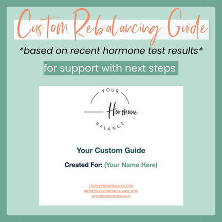 Add on a custom guide for a deeper analysis of your results including an "action plan" breaking down the top nutrition, lifestyle, supplement & bio-identical hormone suggestions for you, based on your unique results (including YHB approved brands, extra resources & custom insights). Suggestions are focused on estrogen, progesterone, testosterone, DHEAs, cortisol, thyroid and/or vitamin D levels. NOTE: we will send a Q&A to fill out regarding your symptoms and hormonal health history, so we can provide helpful insights and suggestions.